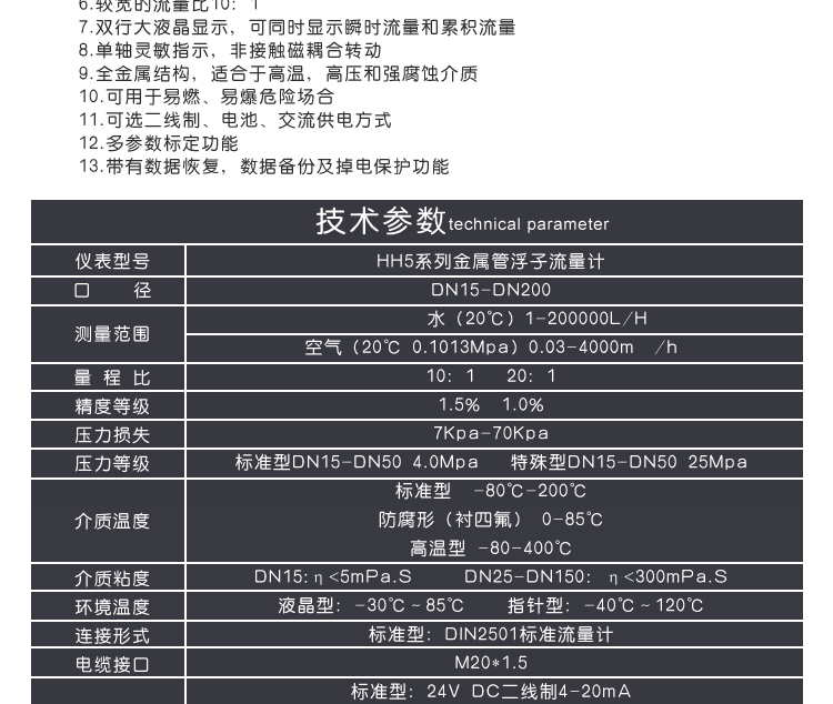 实现距离远传显示、记录、积算和控制等功能。具有独特的双指示系统,双行液晶数字显示,耐高温高压