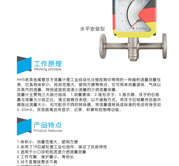 它可用来测量液体、气体以及蒸汽的流量,特别适宜低流速小流量的介质流量测量。