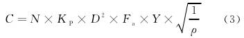 2)对于测量气体介质,流量常数C见下式所示: